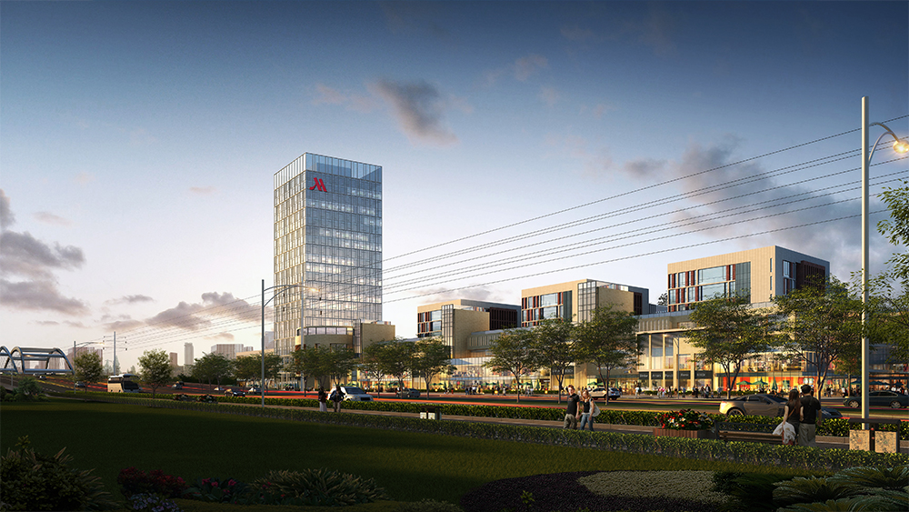 规划在整体布局结构的基础上,协调各功能区的结构关系,有机组织城市景观绿化系统、道路交通系统和建筑组团,形成功能相对完整、景观自成体系的功能区域,创造现代化、生态化的国际采购中心。整体规划结构可以概括为“一心、两轴、四区”。